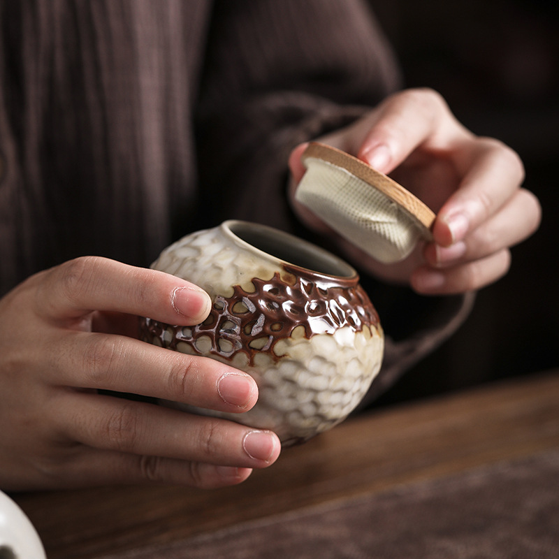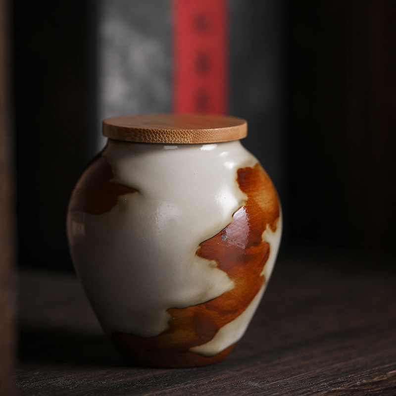 Kiln Changing Ru Kiln Small Tea Leaves Jar China Wind Retro Tea Barn Wake Tea Jar Storage Tea Jar Sealed Jar Portable Upscale Day Style