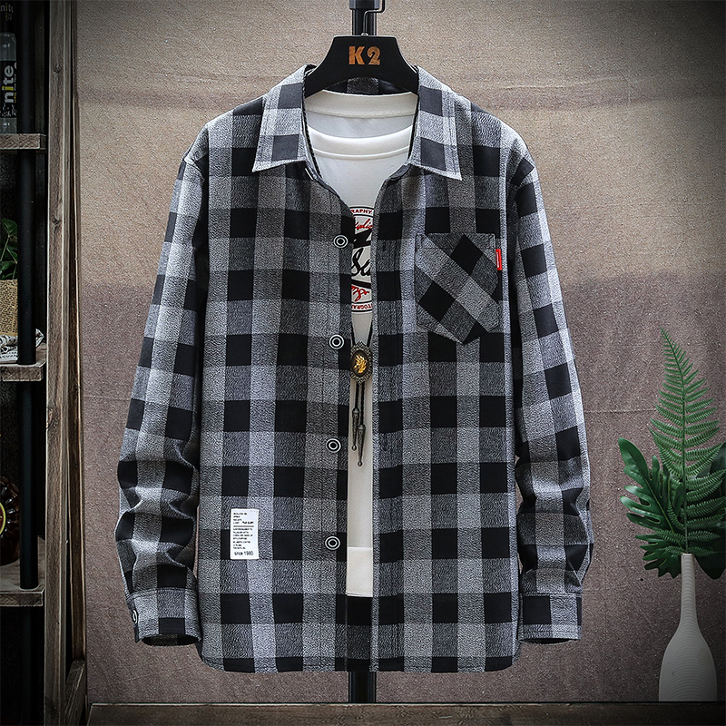 South Pole shirt male long sleeve 2022 fall new Korean version Trend plaid casual jacket handsome men's shirt