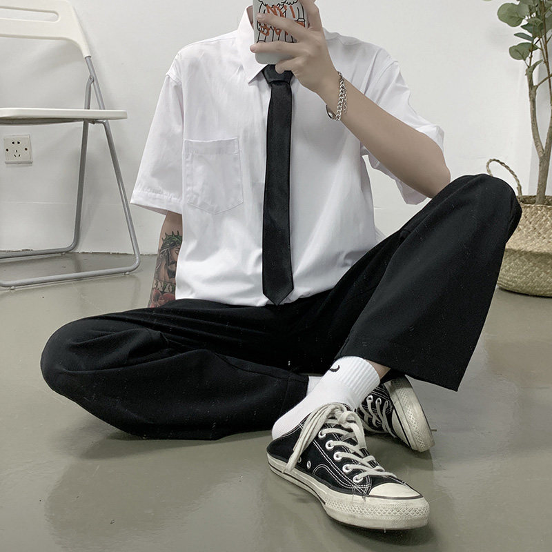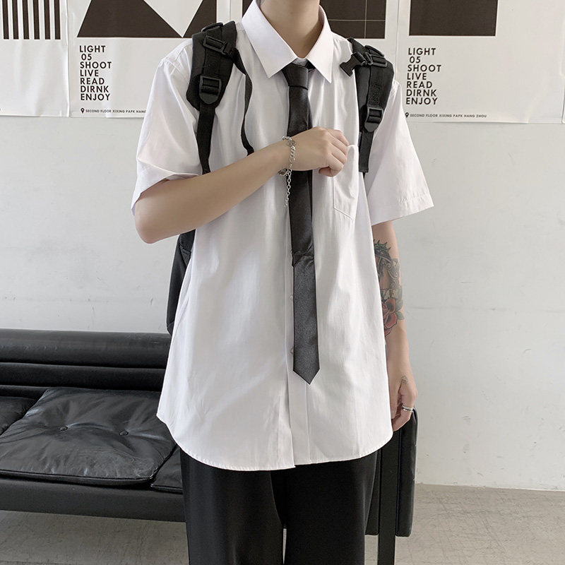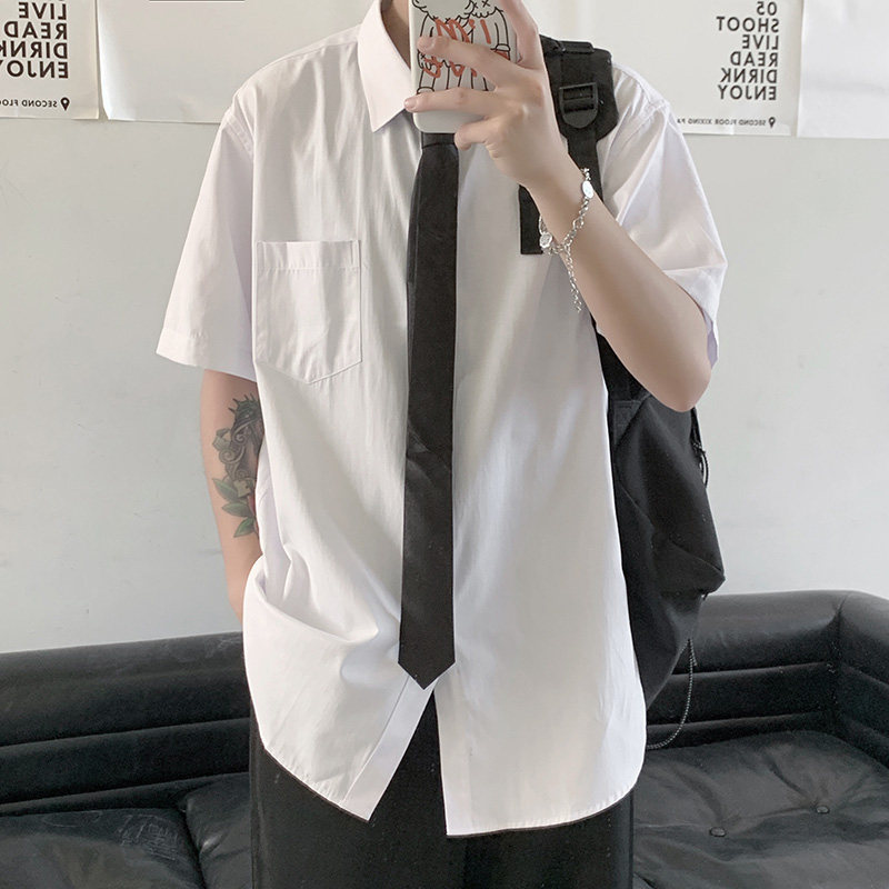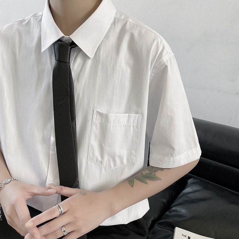Summer thin white shirt men's short-sleeved Korean version trendy handsome half-sleeved shirt bf Hong Kong style loose casual dk uniform