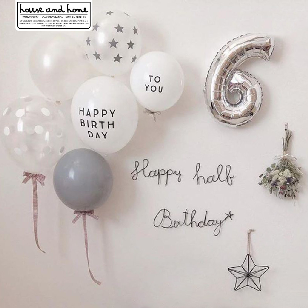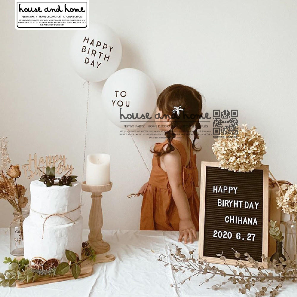 INS Happy Birthday Letters White Latex Balloon Baby Party Forest with Nordic style decoration