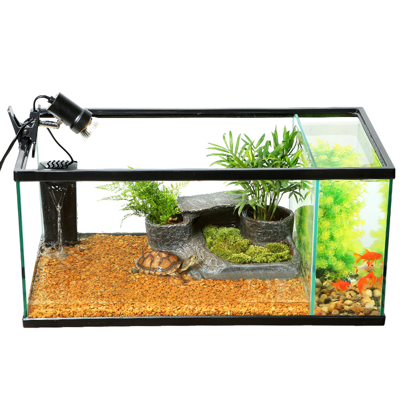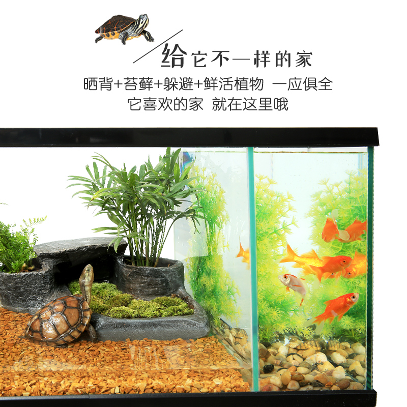 Glass turtle tank with sun-drying platform aqua and land tank ecological water and land tank raising turtle tank fish tank turtle tank fish turtle mixed culture tank