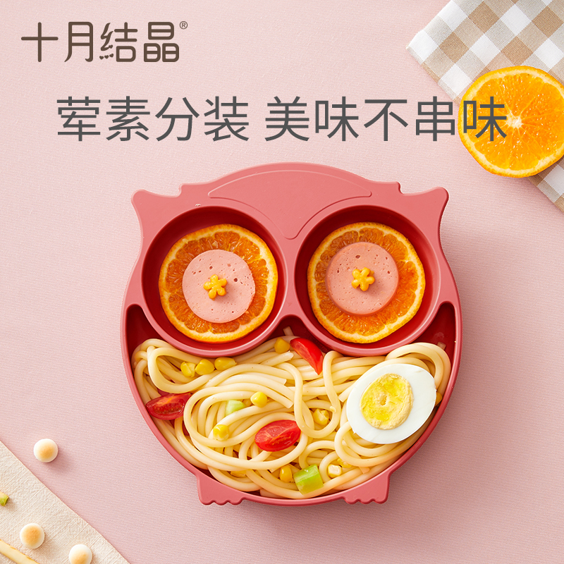 October crystalline silicone dinner plate baby baby tableware non-staple food straw bowl divided suction cup learning to eat training