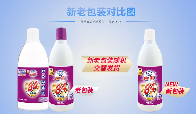 White cat 84 disinfectant kitchen cleaning decontamination cleaning indoor bleached clothes inactivated bacteria 700g*3 bottles