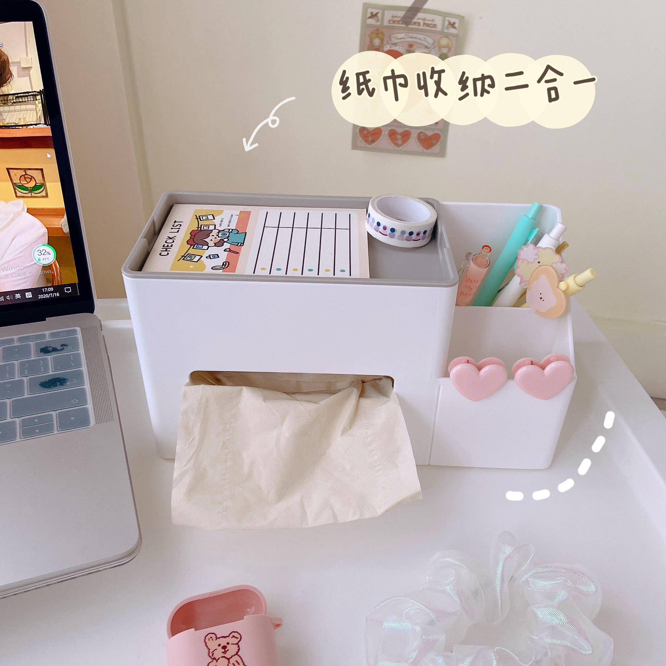 ins paper towels box pen holder integrated containing box multifunction cute creative living room bedroom dorm room table toilet paper box