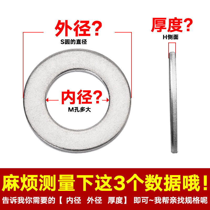 Metal galvanized flat gasket ultra-thin gasket screw mat iron thickened long side round M3M4M5M6M8M10
