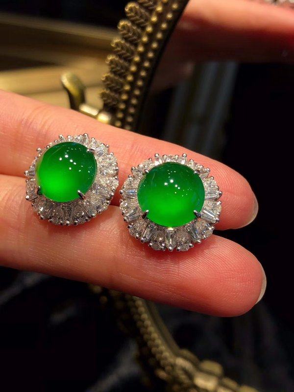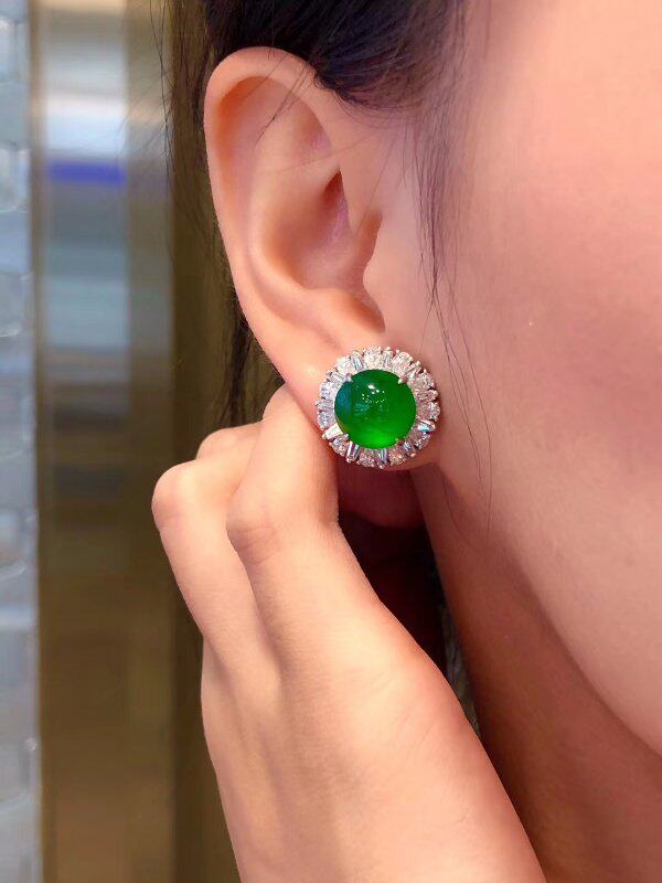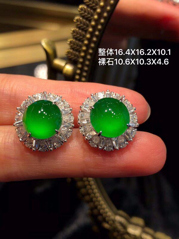 Natural ice species Zhengyang green jadeite earrings 18k gold inlaid earrings Myanmar a goods egg face full green earrings women