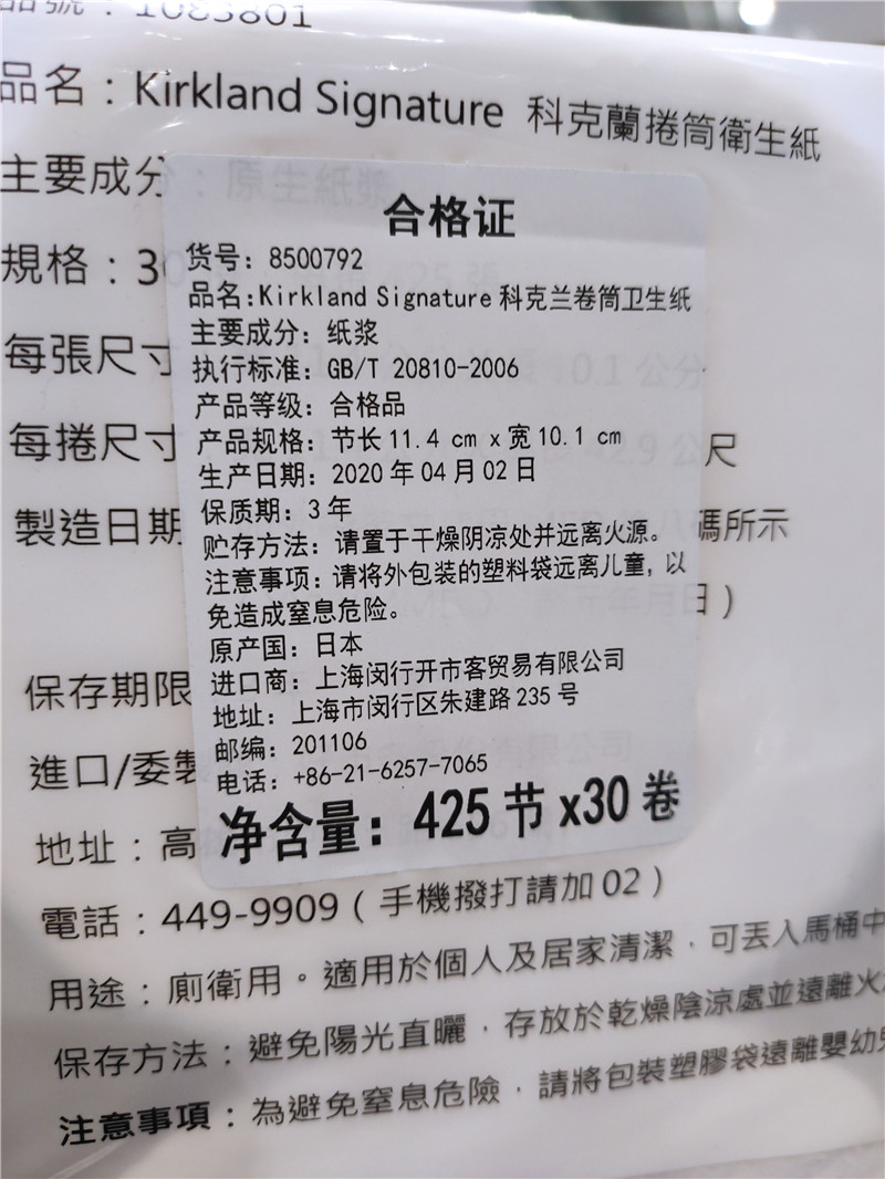 Costco Japan produces KITKLAND Corkland Cryle Toilet Paper 425*30 printed printed