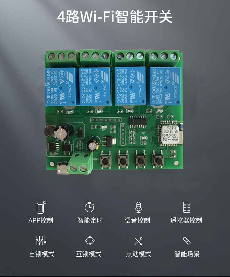 Easy microlianz 5-32V four-way WiFi relay module mobile phone APP remote control garage roll curtain door retrofit