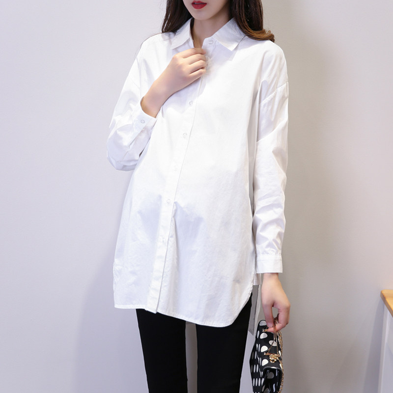 2023 Pregnant women dress new loose version of large - code shirt spring - dressed pregnant woman to rub the bottom coat spring and autumn white shirt Han