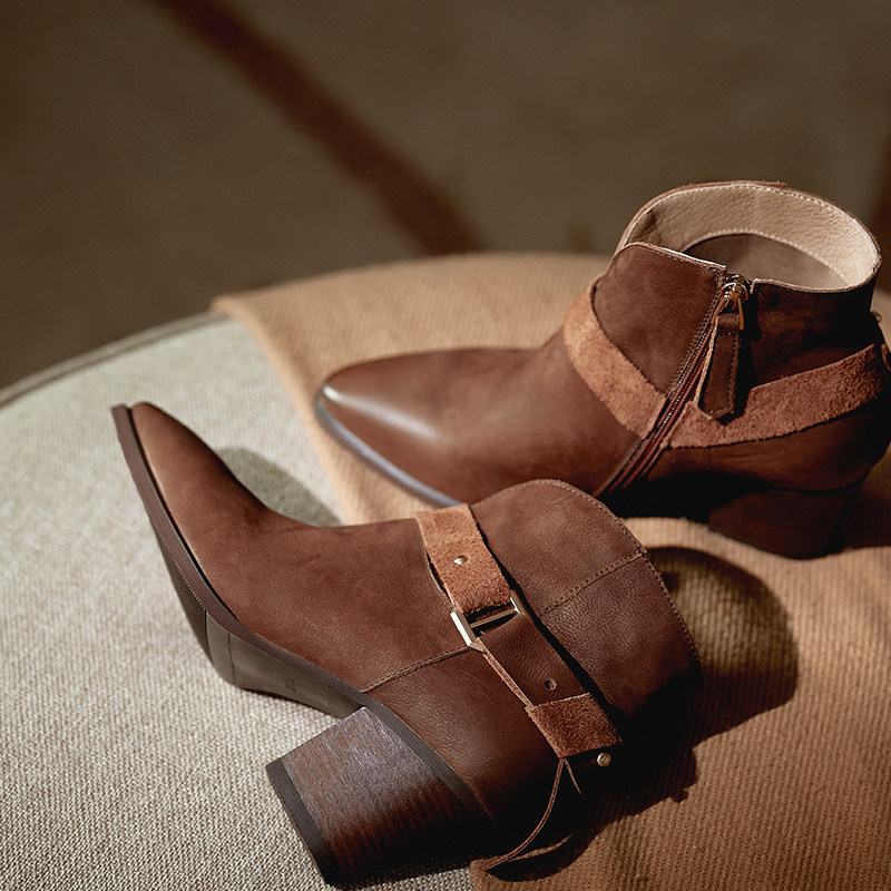 ins retro pointed toe small leather shoes women are thin with skirts soft leather Chelsea short boots women's spring and autumn single boots bare boots