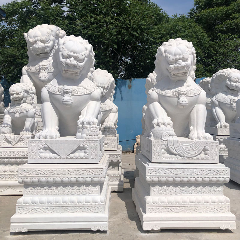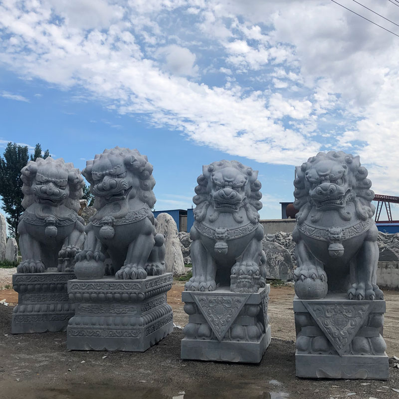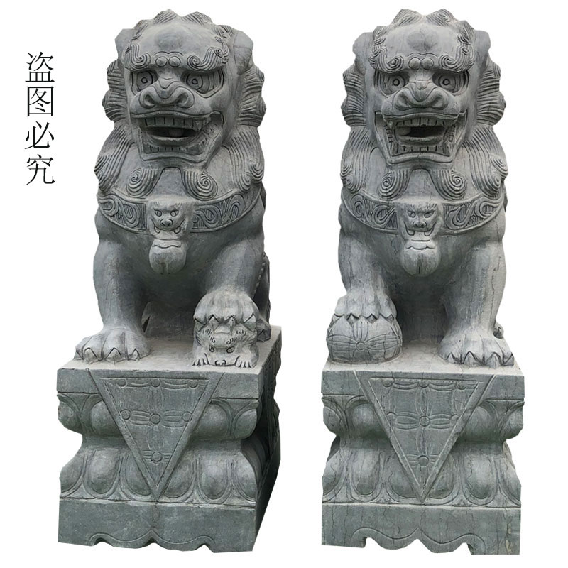 Stone sculpted green stone lions pair of round carved courtyard doorway stone natural Han white jade Little stone lions Outdoor swing pieces