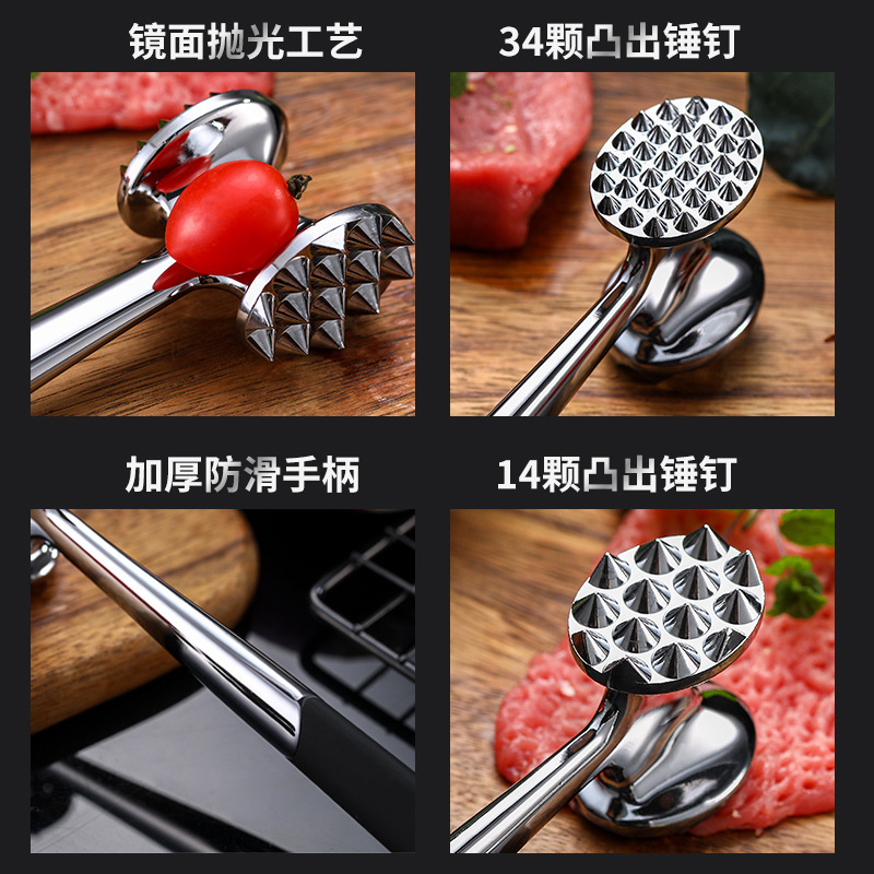 Loose meat hammer kitchen pat beef hammer tender meat household rib-breaking tool beating steak artifact double-sided solid hammer