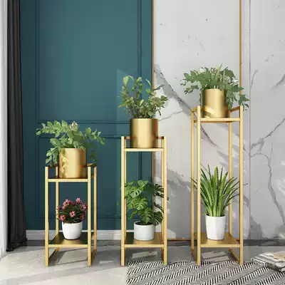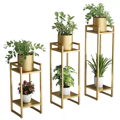 Wrought iron Nordic flower rack Balcony living room Floor-to-ceiling indoor light luxury small space Gold Ge multi-layer shelf flower pot rack
