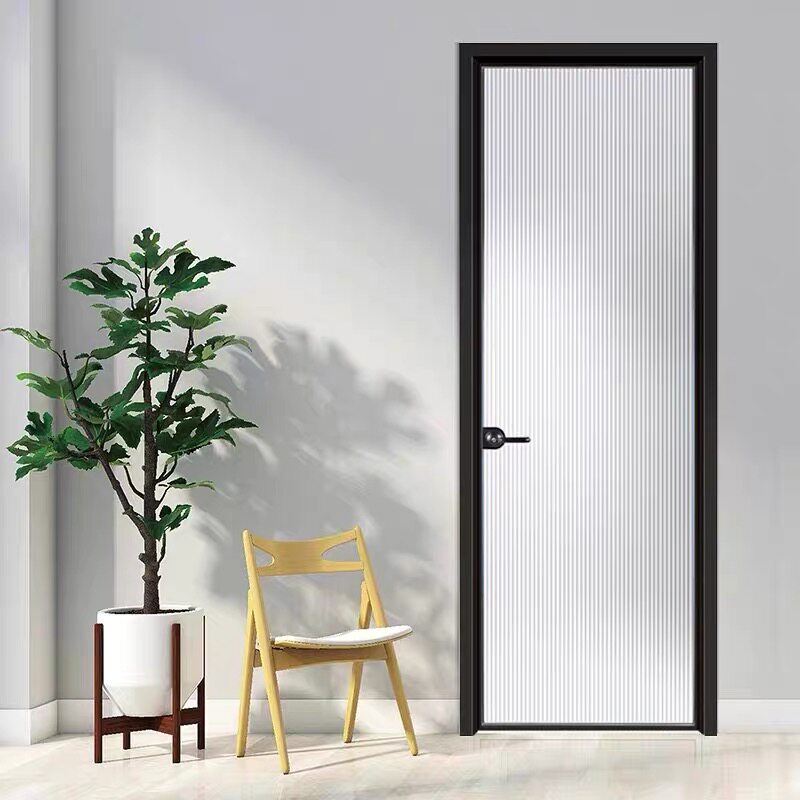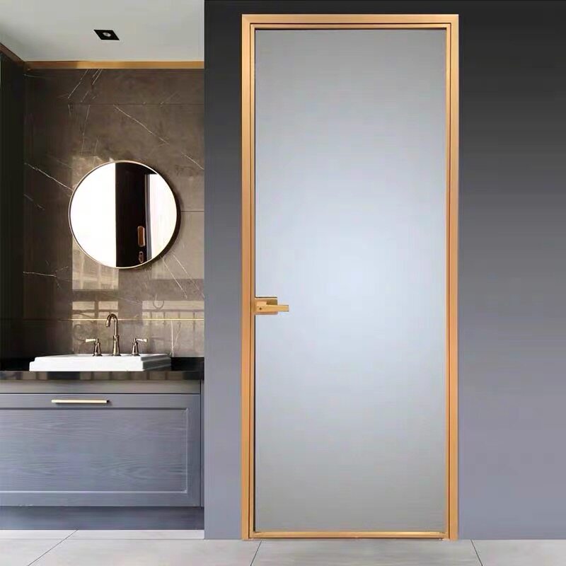 Minimalist modern wind swing door powder room door Kitchen door Balcony door Titanium magnesium aluminum alloy glass partition door customization