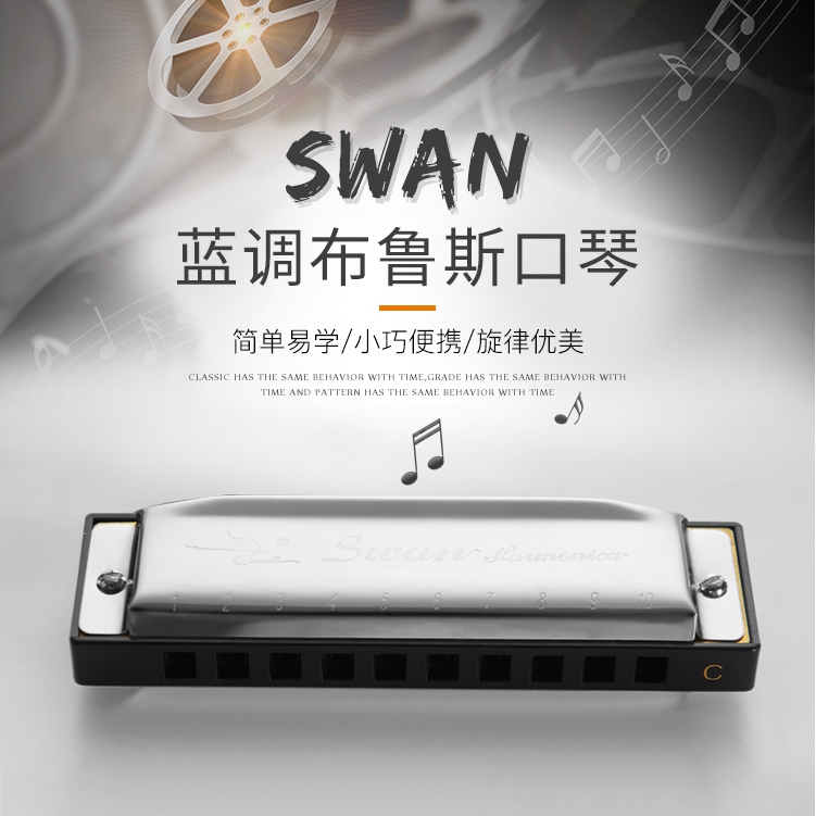 Swan 10 - Kun Bruce harmonica male C - tune children beginner student blues 10 - hole introductory micro - musical instrument