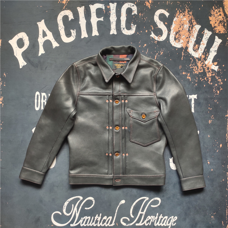 Full grain camel leather 506 gold miner TYPE1 leather jacket
