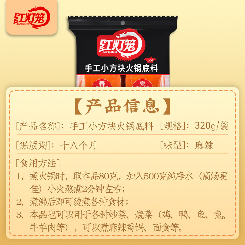 Red lantern Chongqing Sichuan Bull oil hot pot soup bottom 320g small packaging One person for authentic spicy small block household