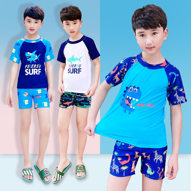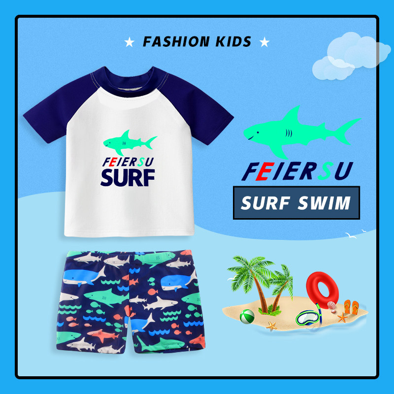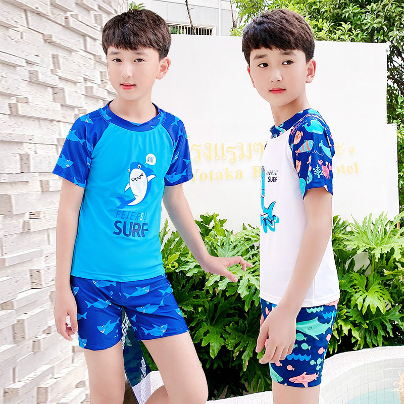 Child bathing suit boy small CUHK boy baby boy swimming trunks two-piece short sleeve swimsuit sunscreen swimsuit kit equipment