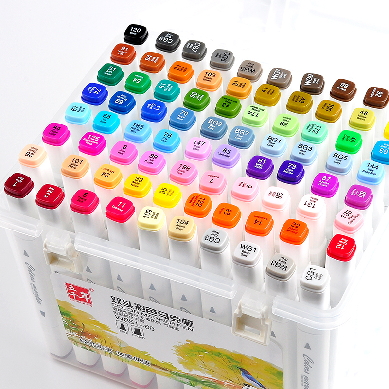 Five thousand years of mic pen set color double-headed mic pen 48 color student painting pen 24 36 60 full set of 80 color clothes complementary color pen art student special animation beginner 12 color painting pen