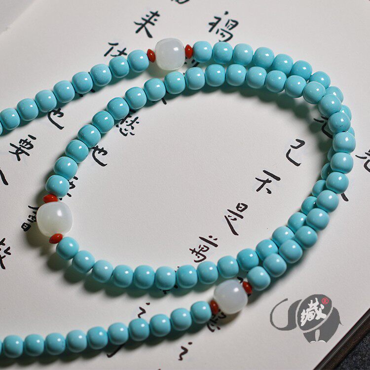 Boutique raw ore Hubei turquoise high porcelain old-fashioned Buddha beads 108 pieces, matched with Sugong carved accessories to wear with court beads