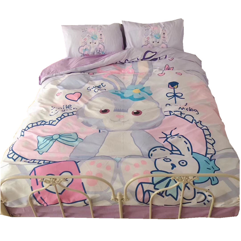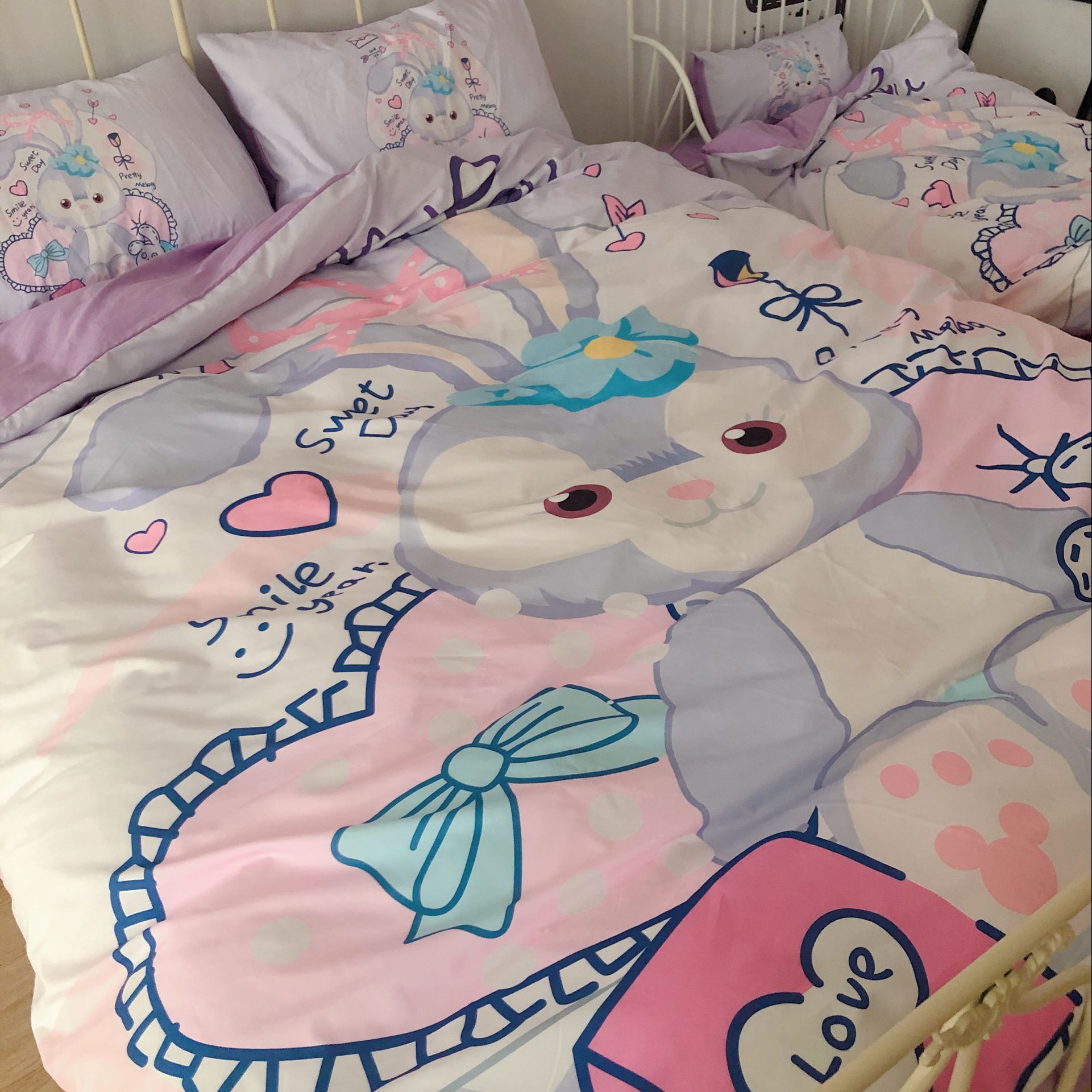 Star Debra Stella Cartoon Pure cotton bed Three-four sets of children All cotton cute quilt cover sheet Single Purple