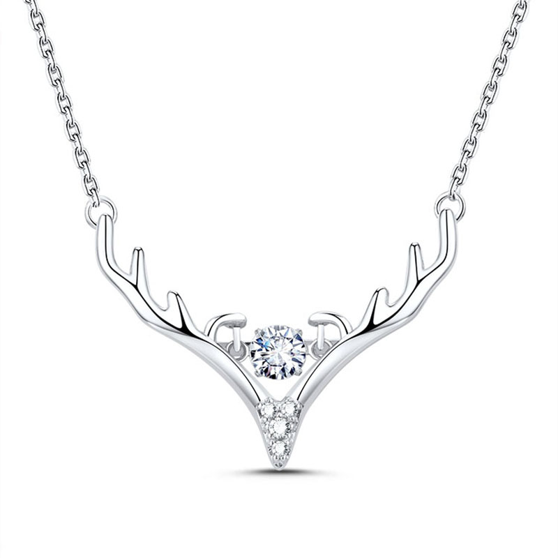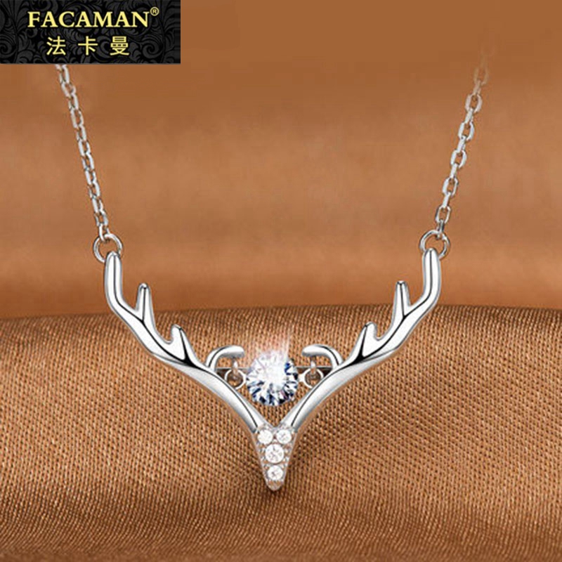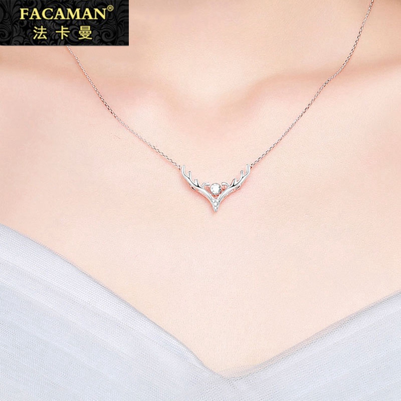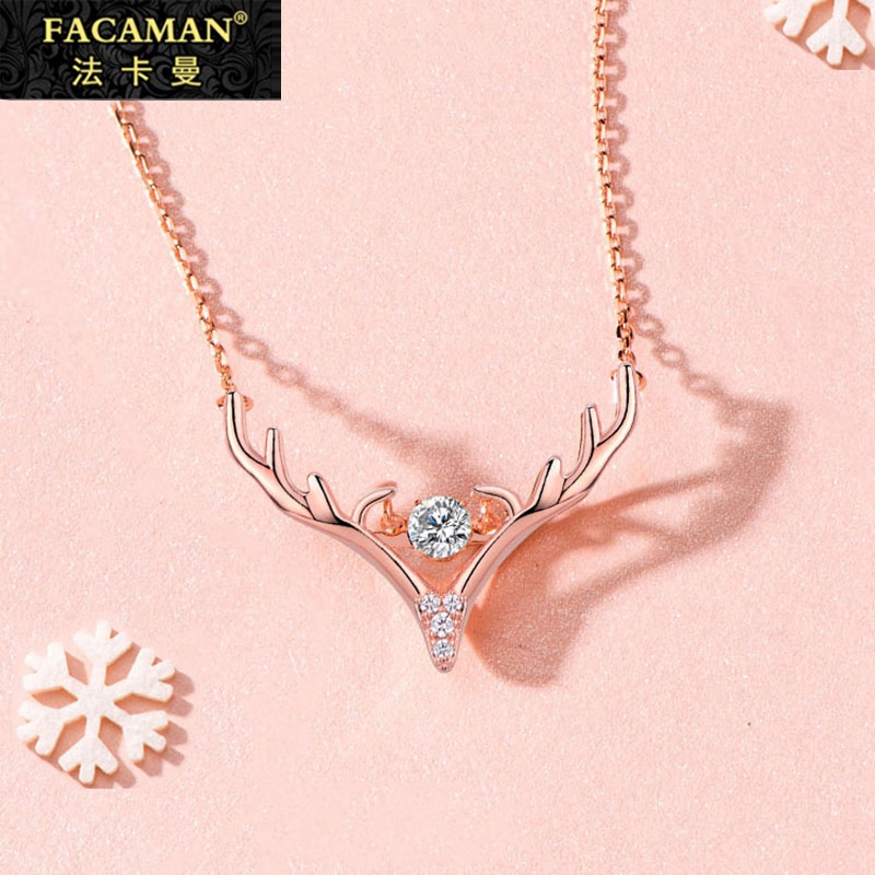 Fakaman a deer has you 18k gold rose gold color gold necklace female antlers sterling silver collarbone chain inlaid zircon lettering