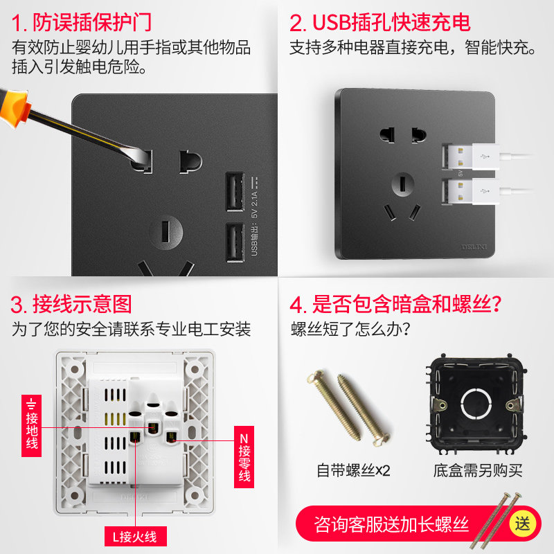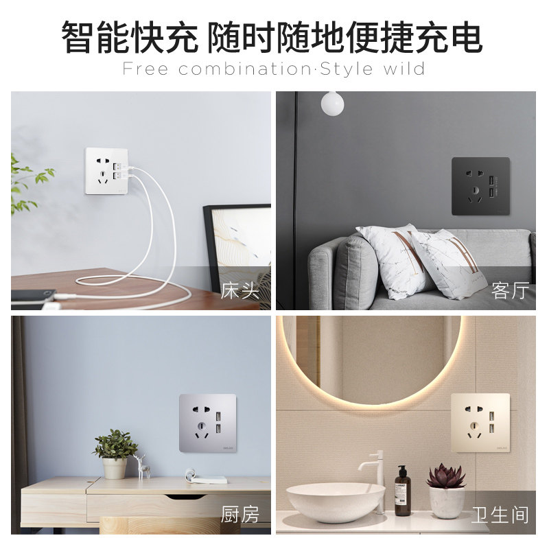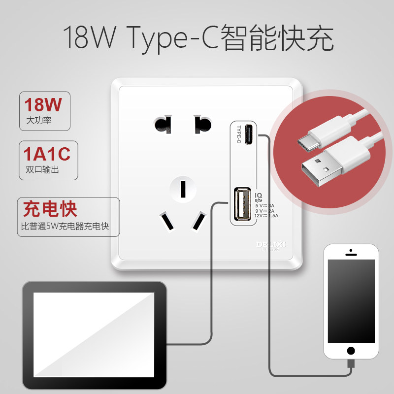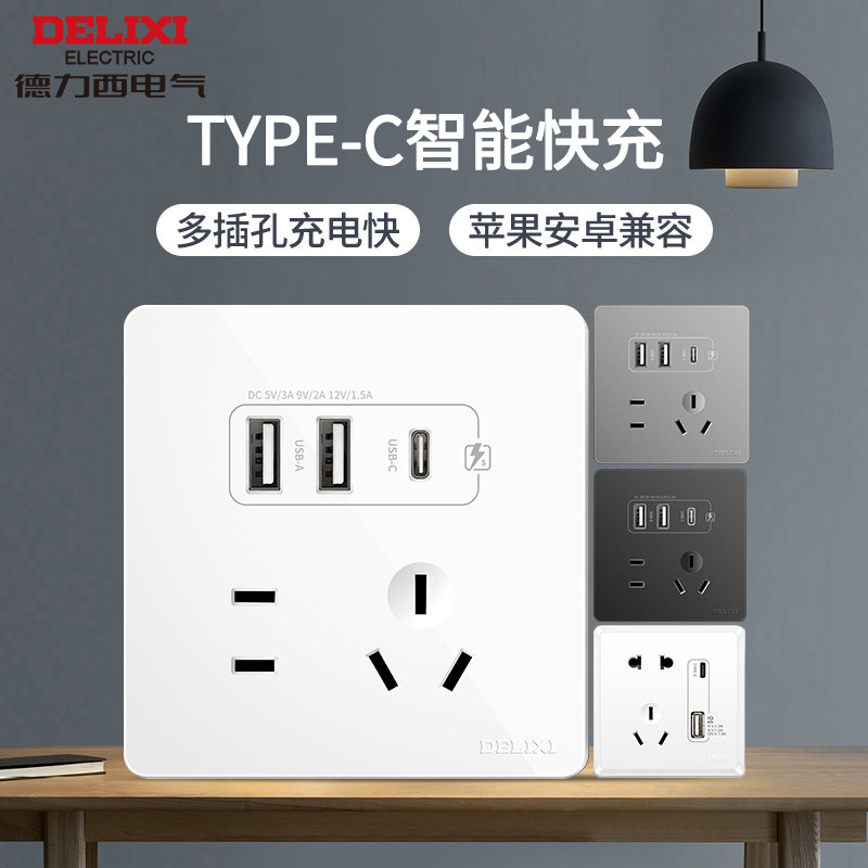 Delixi 86 type concealed TYPE-C socket panel home 5 holes with usb power supply mobile phone charging intelligent fast charging