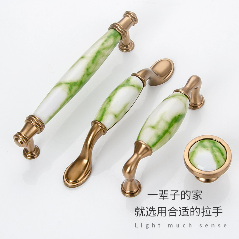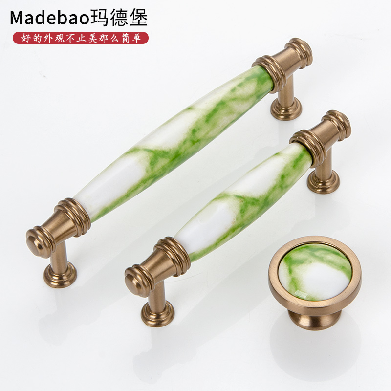 American green marble pattern creative kitchen cabinet door handle single hole European style large wardrobe door drawer ceramic handle