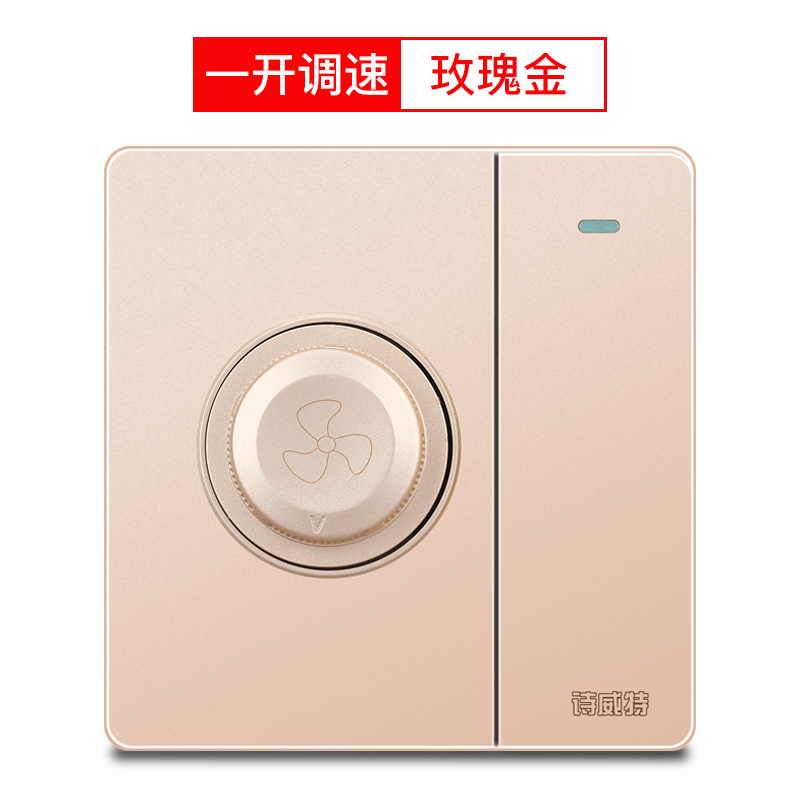 86 type golden concealed electric fan speed controller one open with double control speed control switch ceiling fan stepless speed control with switch