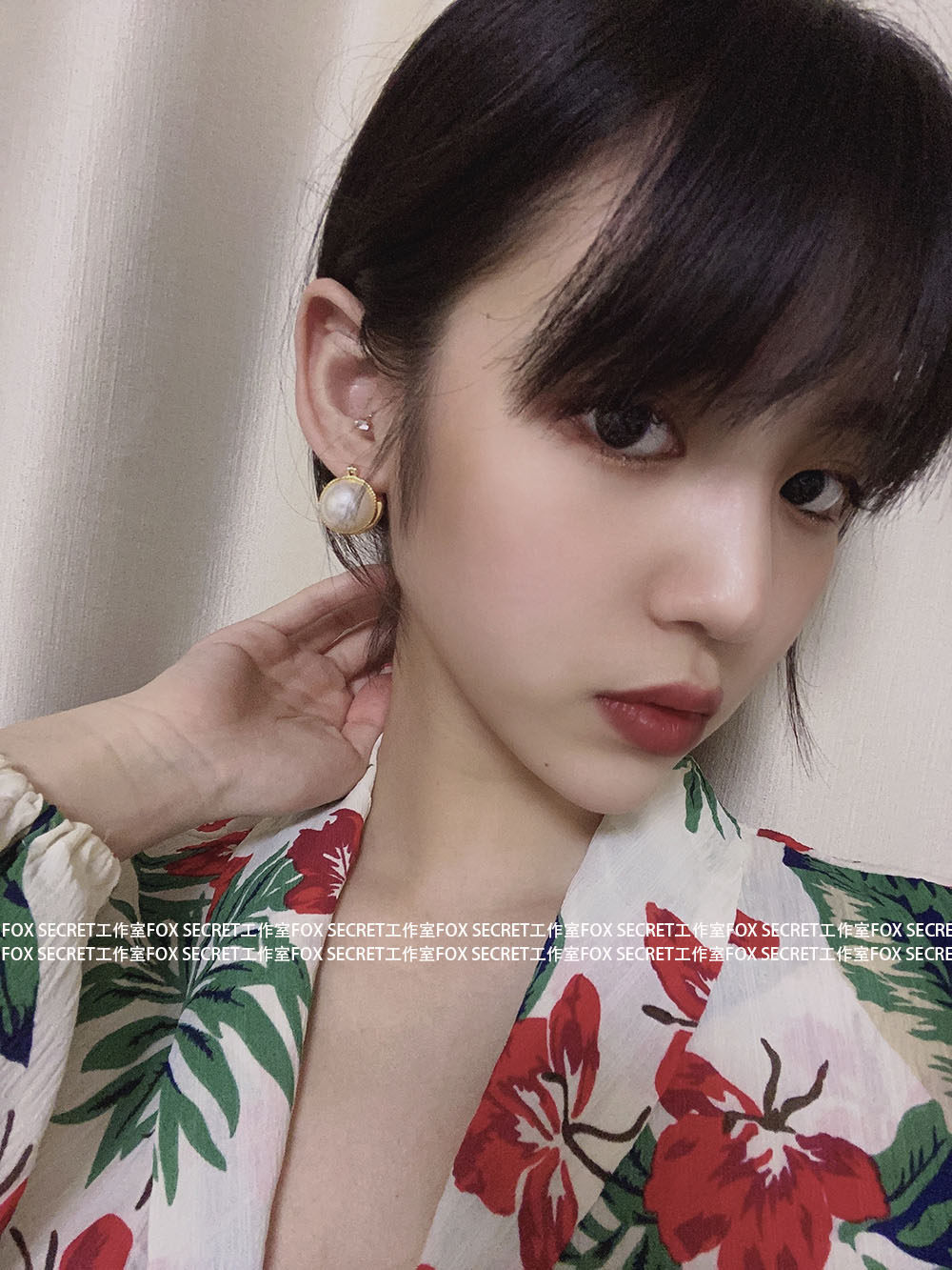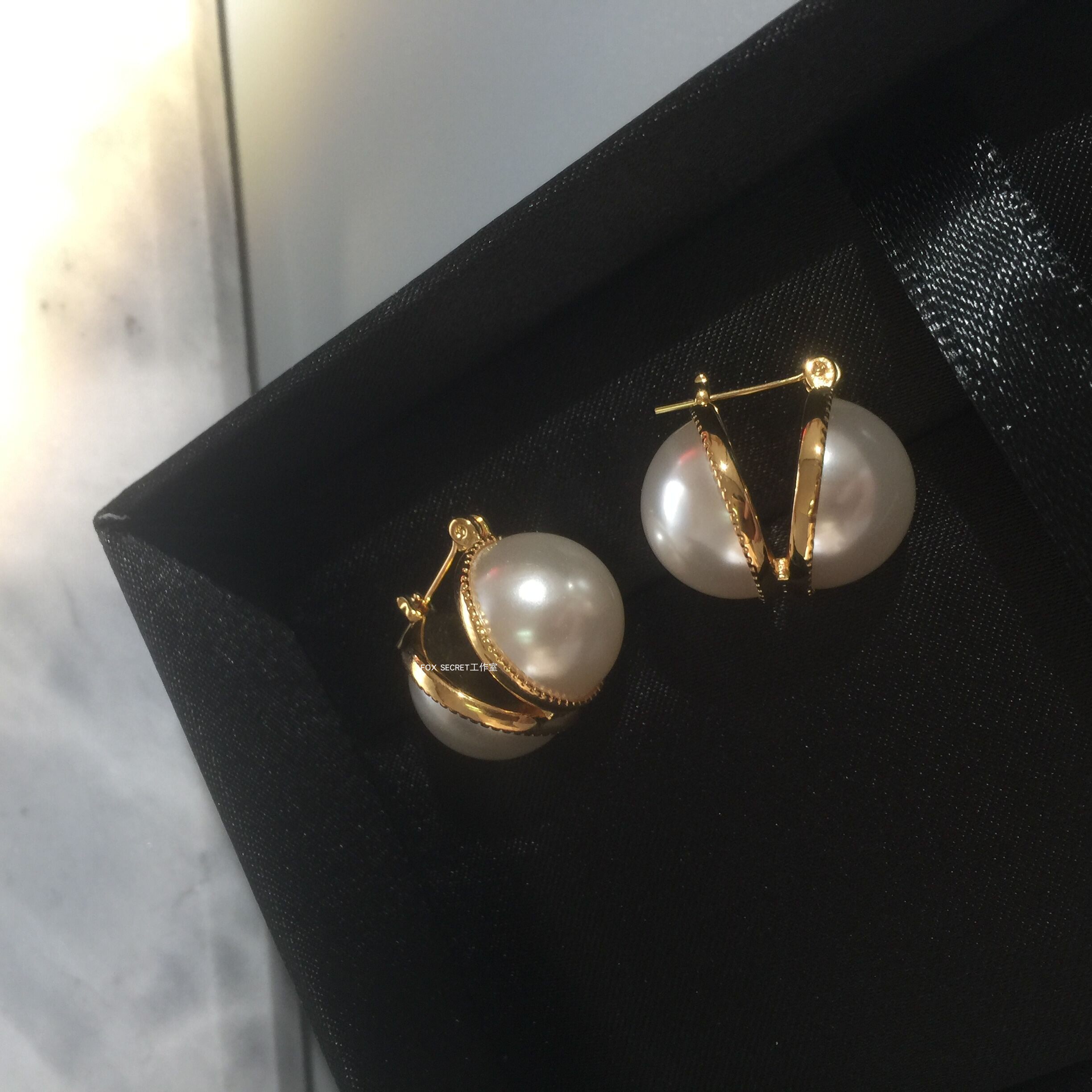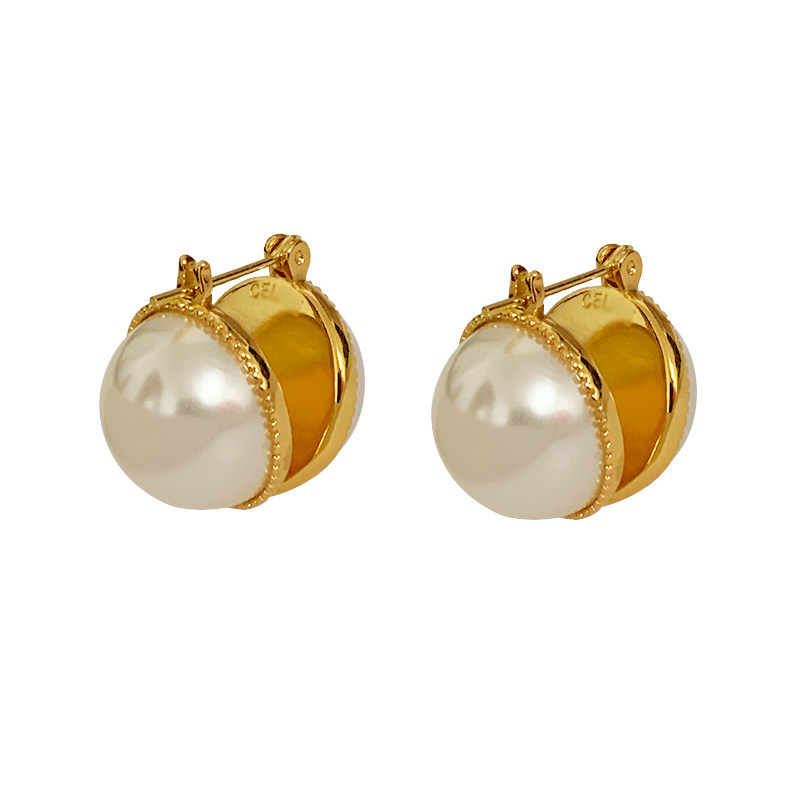 Lazy French ~ Advanced Respiratory Paleo Double - sided Open Pearl Earring Plated with a true gold - colored European and American earbutton