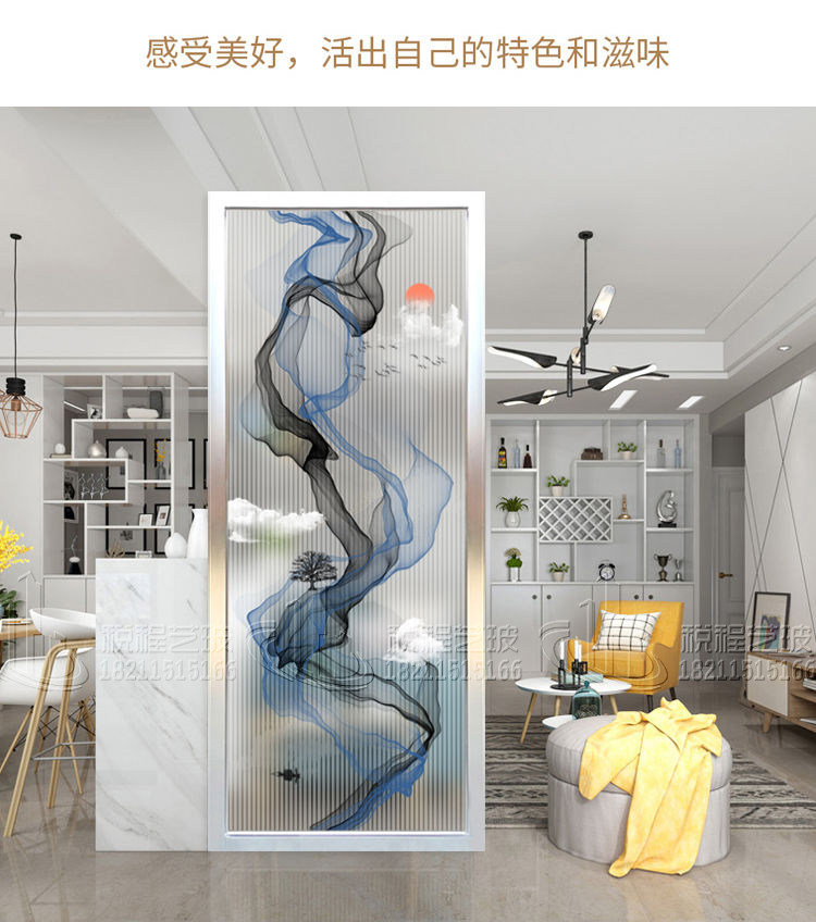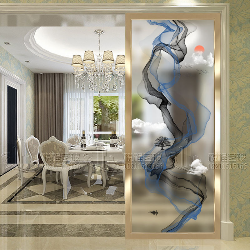 Custom Art Glass Screen Partition Modern Living-room Steel Genguan Frosted Light Transmission Double-sided Light Extravagant Abstract Water Ink