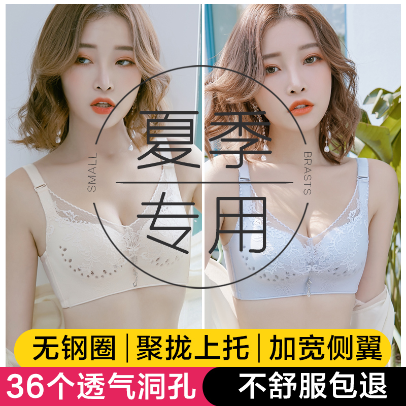 Underwear women's small chest gathered rimless adjustment bra on the collection of sub-milk anti-sagging summer thin bra