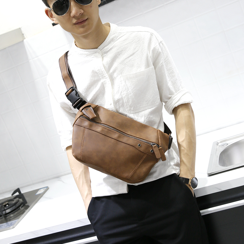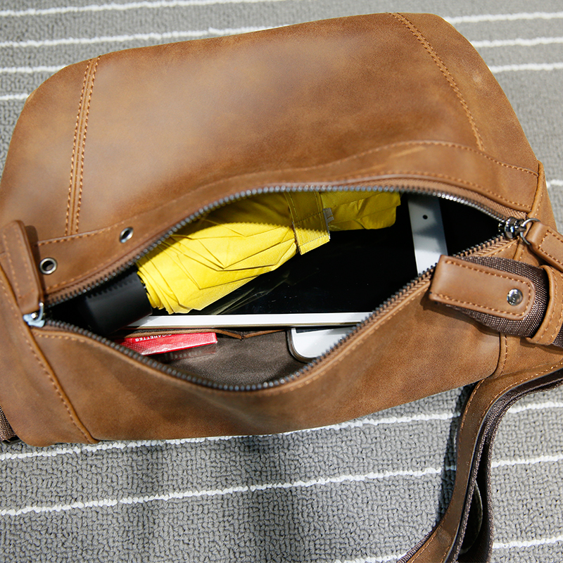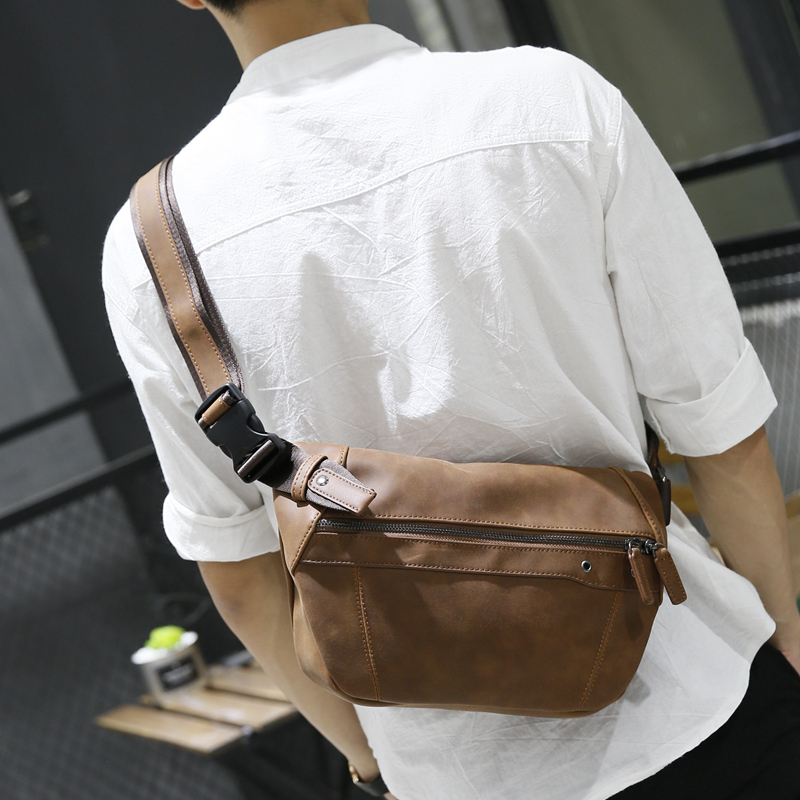 New leather chest bag men's large-capacity messenger bag Crazy Horse leather Korean version of the casual leather shoulder bag trendy small bag
