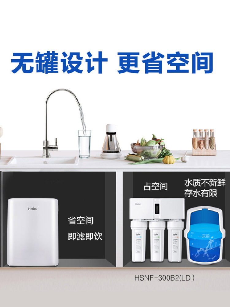 Haier Water Purifier Home Kitchen Tap Water Filter 600G No Tank Straight Drink RO Reverse Osmosis Water Purifier 6H66
