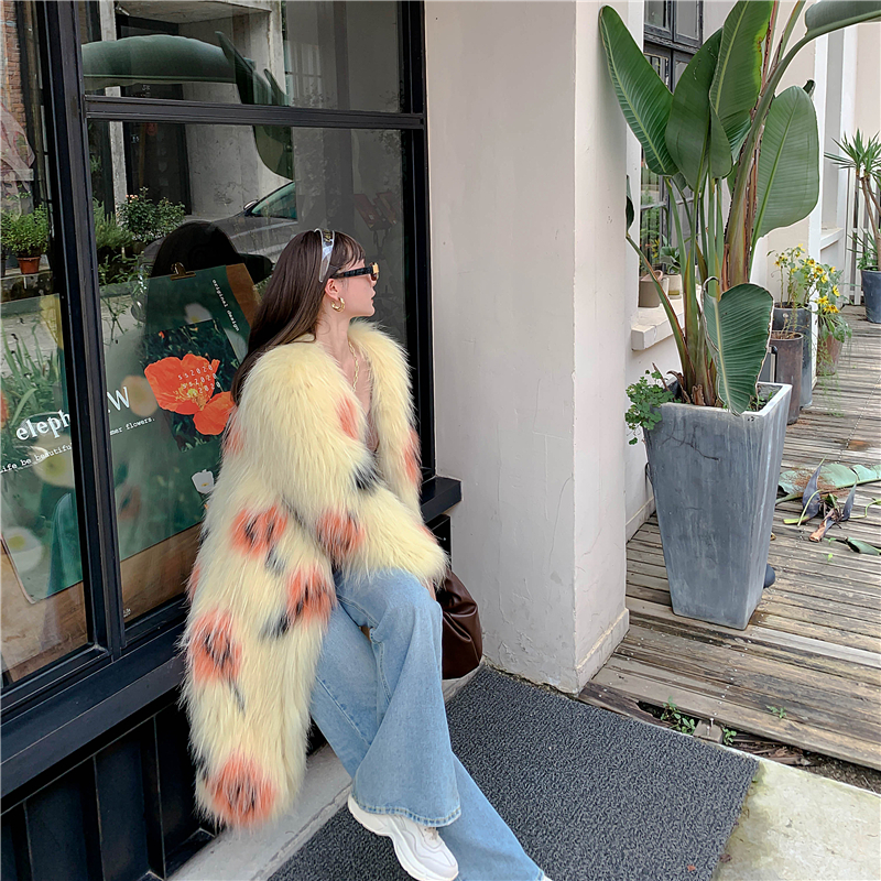 2022 New European and American Walking Tide Brand weaves fur coat female long imported fox fur coat tender yellow