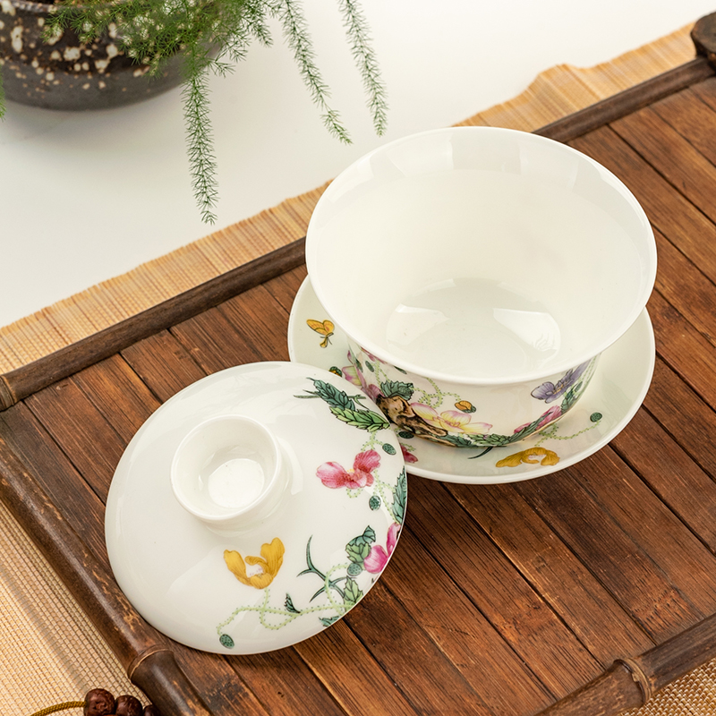 Poppy Grass-Sancai Gaiwan (Medium) Poppy Grass-Sancai Gaiwan 1 Pair Gift Box Poppy Grass-Straight Body Justice Cup Tea Drain