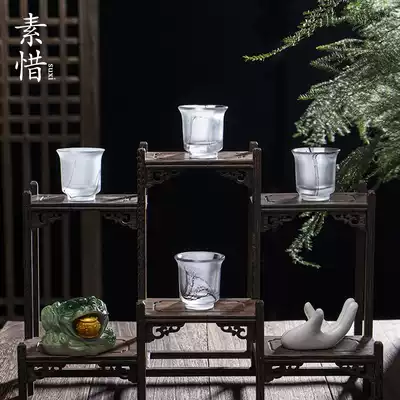 Lucky ink glass small round cup small teacup single small portable small home simple retro Chinese style