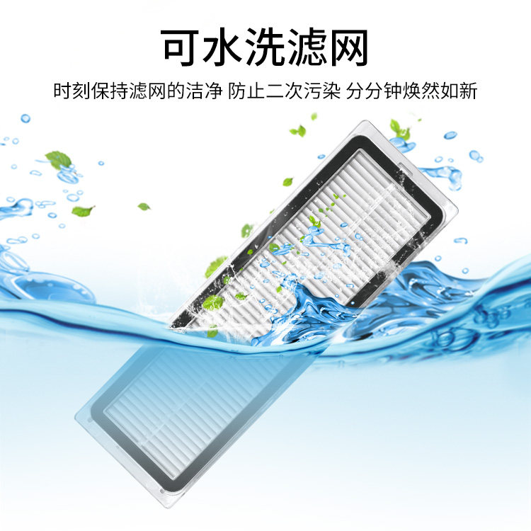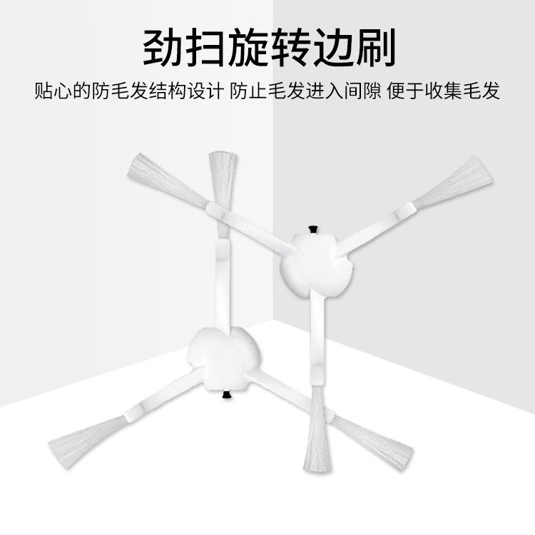Black and white side brushes (pack of 2) Filters (pack of 2) Removable main brush Main brush cover Original rag (2 pieces) Side brush 2 filters 2 filters 2 main brushes 1 side brush 2 main brush 1