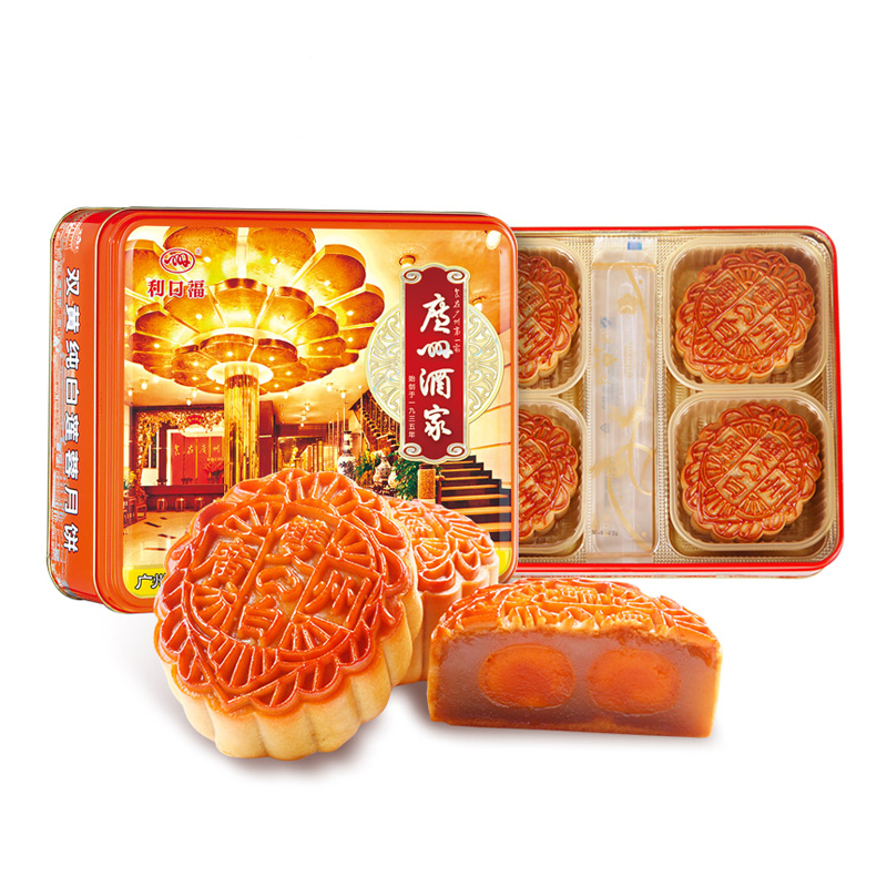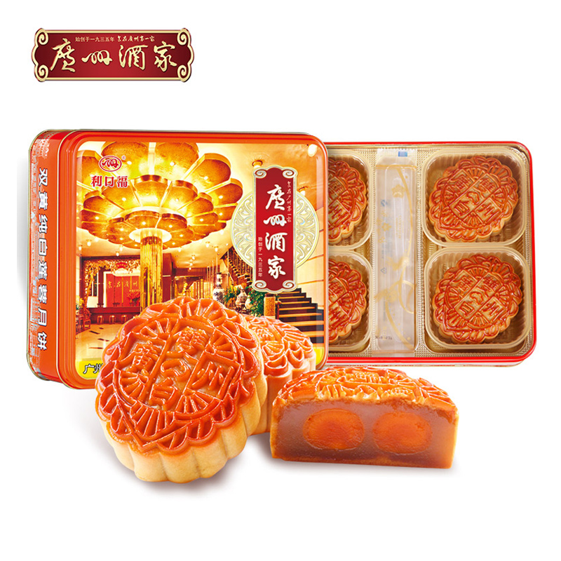 Guangzhou restaurant moon cake double egg yolk pure white lotus seed moon cake gift box 750g Mid Autumn Festival Cantonese moon cake group purchase wholesale