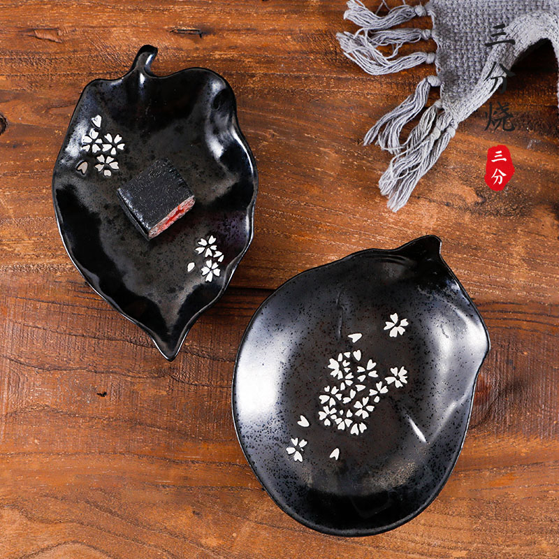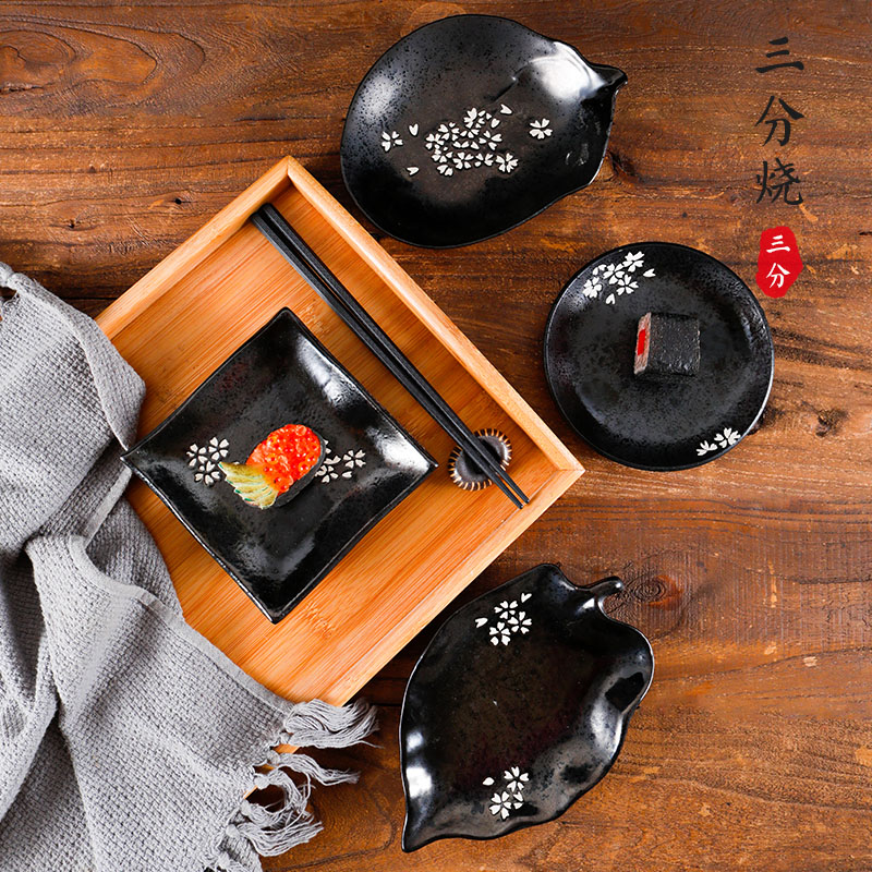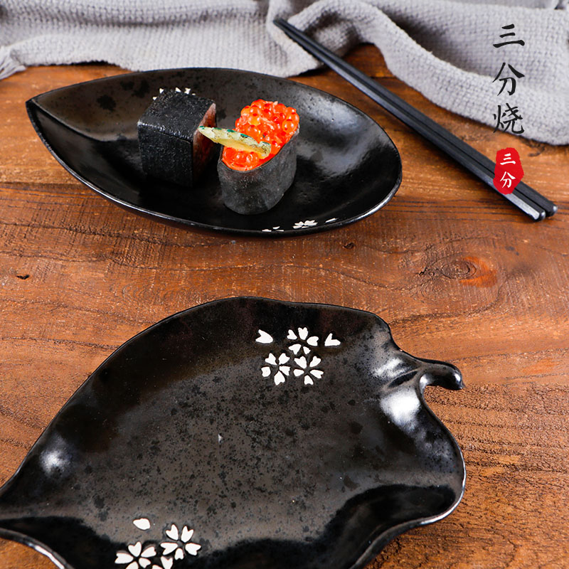 Three-point-grilled Japanese-style rectangular plate Sushi sashimi salmon plate Saury stock heart matcha cake plate Black