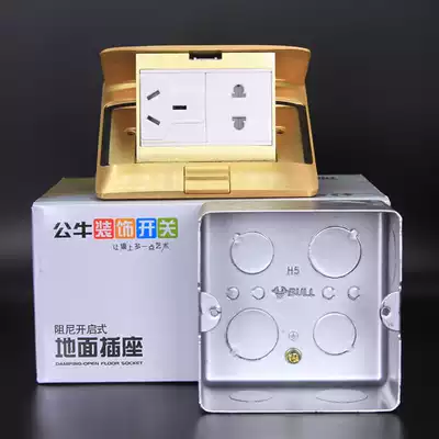 Bull damping ground plug full copper waterproof five-hole hydraulic slow spring household ground two or three sockets 5 hole ground socket