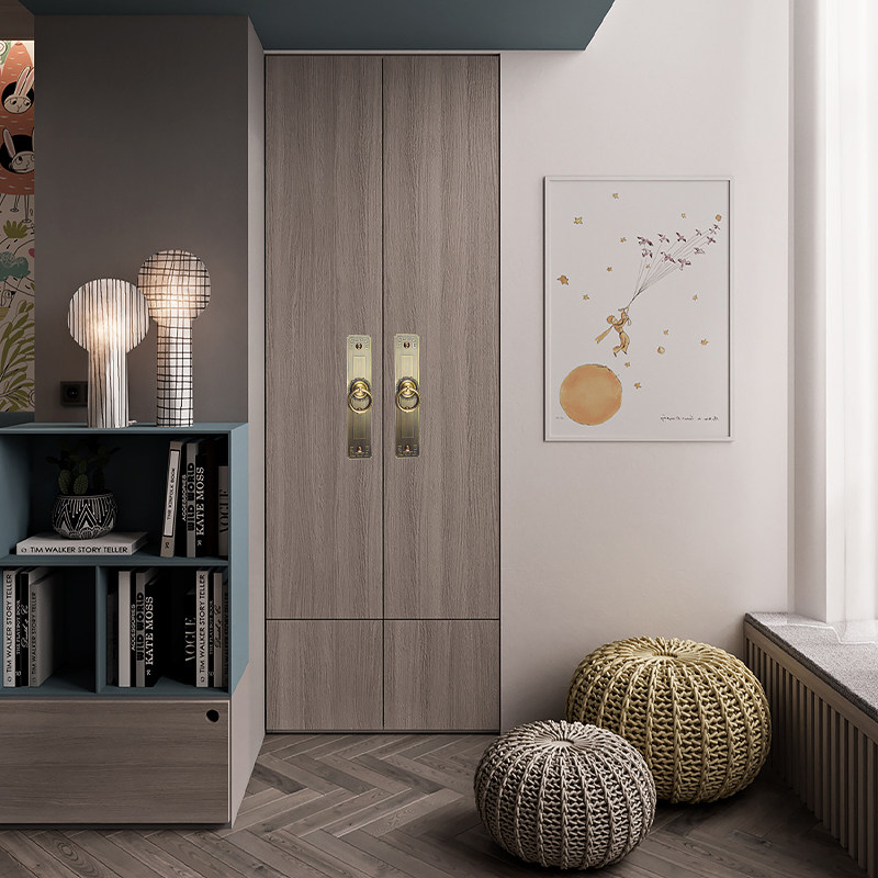 Antique door window sash door large handle wardrobe bag room door Chinese strip yellow copperplate free of punch and handle door ring pure copper