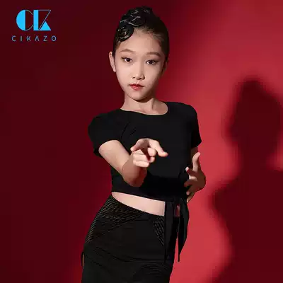 Children's Latin Dance Practice Women's Top 2020 New Girls Summer Professional Short Sleeve Two-Piece T-shirt 1137
