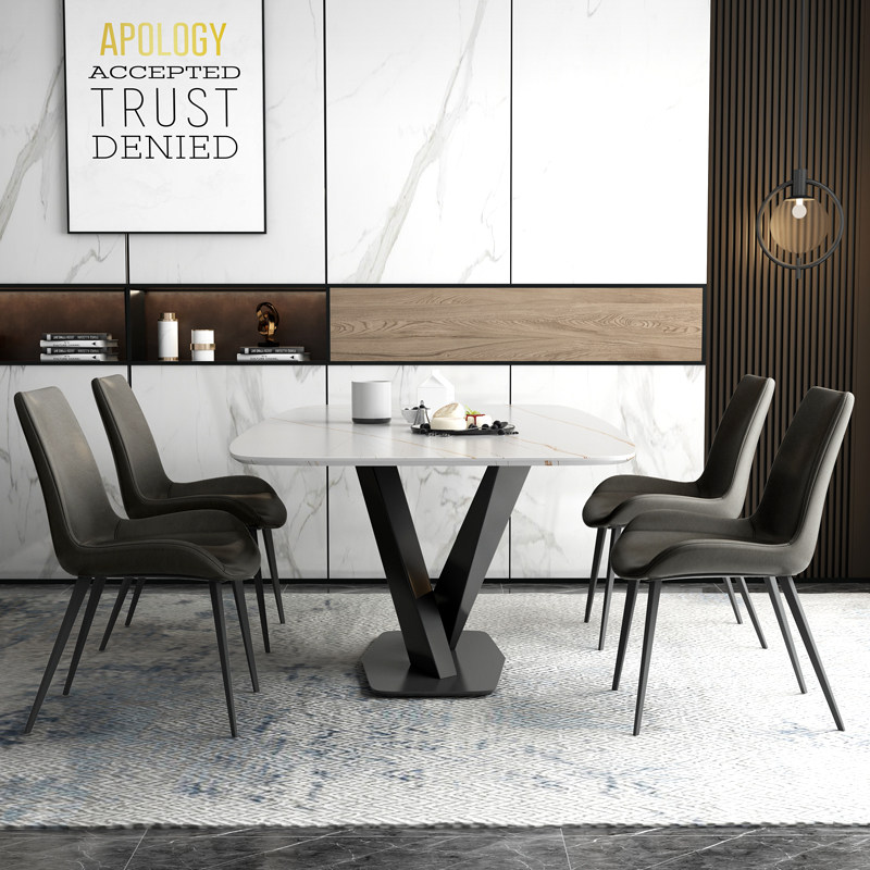 Middle Grace style extremely minimalist rock plate dining table and chairs Combined modern minimalist small family dining table Gentable design light and luxurious dining table