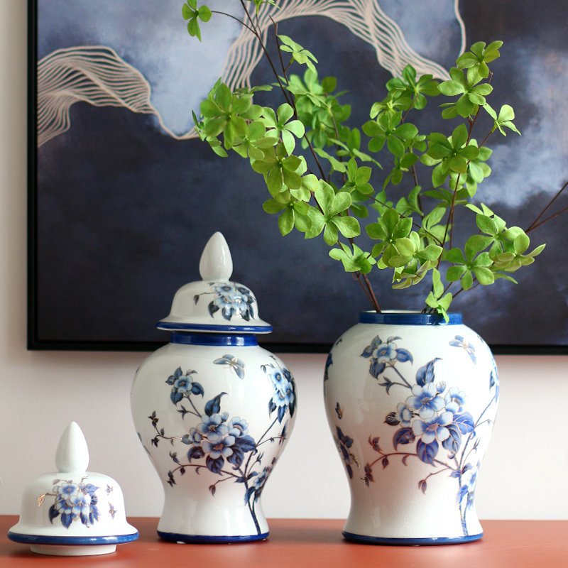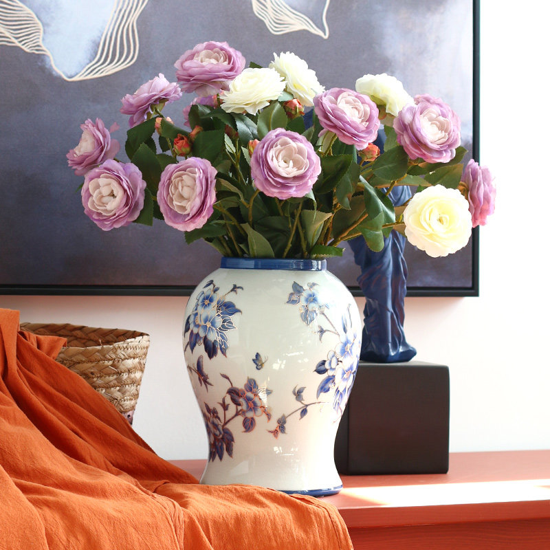Elegant and gentle Chinese-style ornaments ceramic vases new Chinese-style living room classical hand-painted decorative high-legged flower arrangements