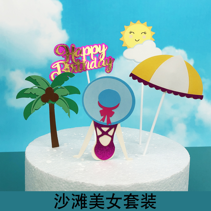 Beach Beauty Cutigue Cake Decoration Dessert Dessert Table Birthday Party Plug-in Summer Plugin Fruit Card