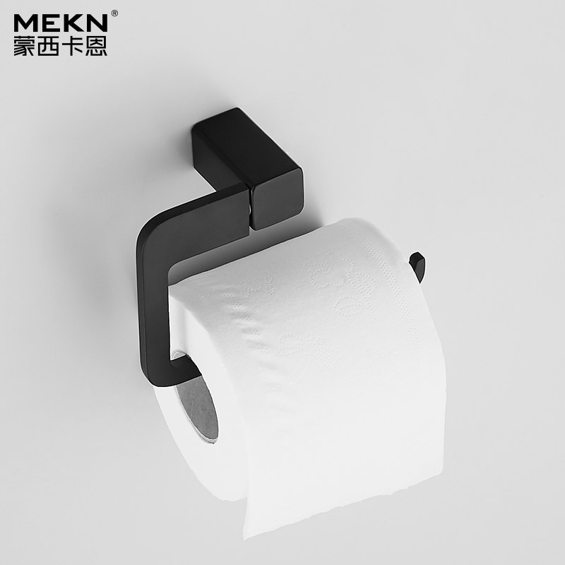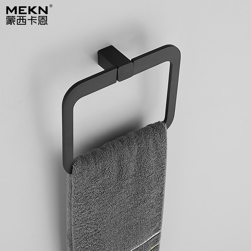Simple Black Four-Piece Set (Punched) Minimalist Black Single Hook (Punched) Minimalist Black Tissue Rack (Punched) Minimalist Black Towel Holder (Punched) Minimalist Black Towel Ring (Punched)