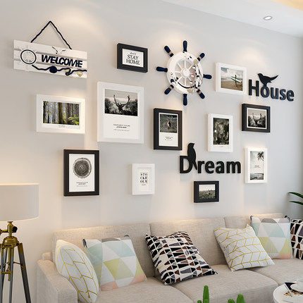 Creative living room photo wall decoration net red sofa background wall photo frame hanging wall combination bedroom photo album free punch