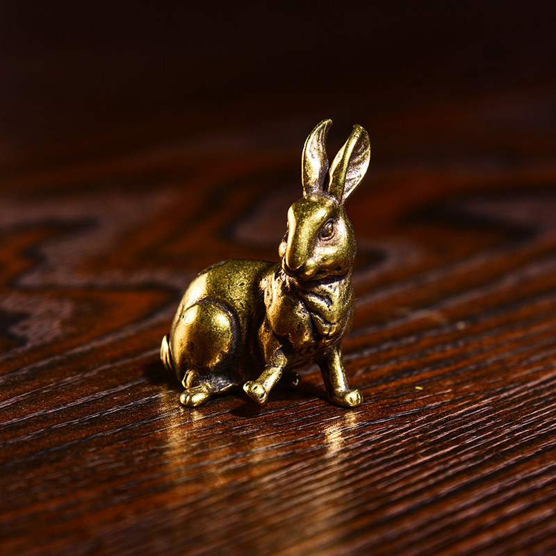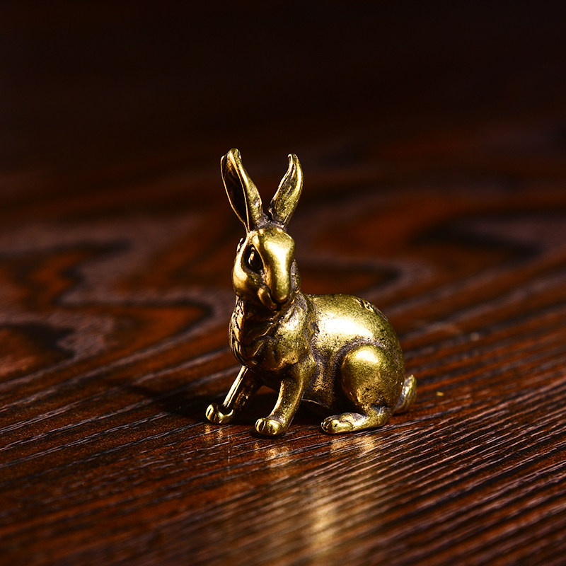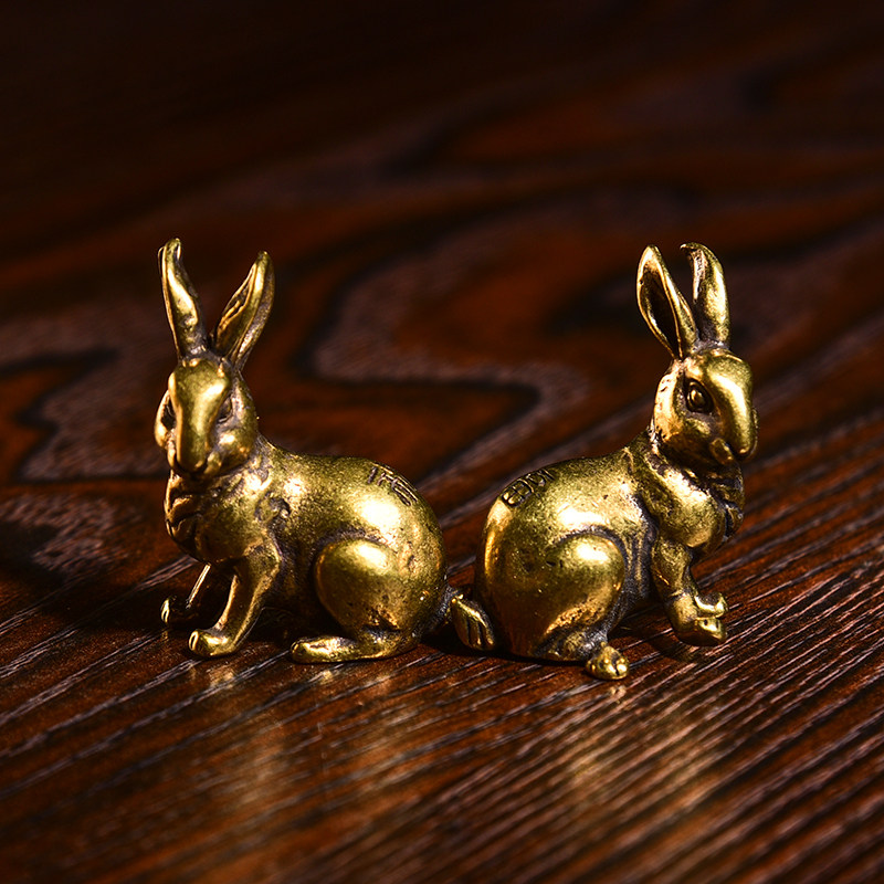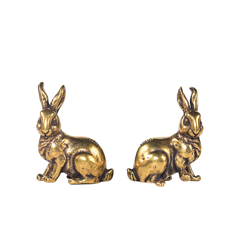 Brass micro-sculpted retro solid raw Showa rabbit home clubhouse tea darling with a pair of hands and a pair of