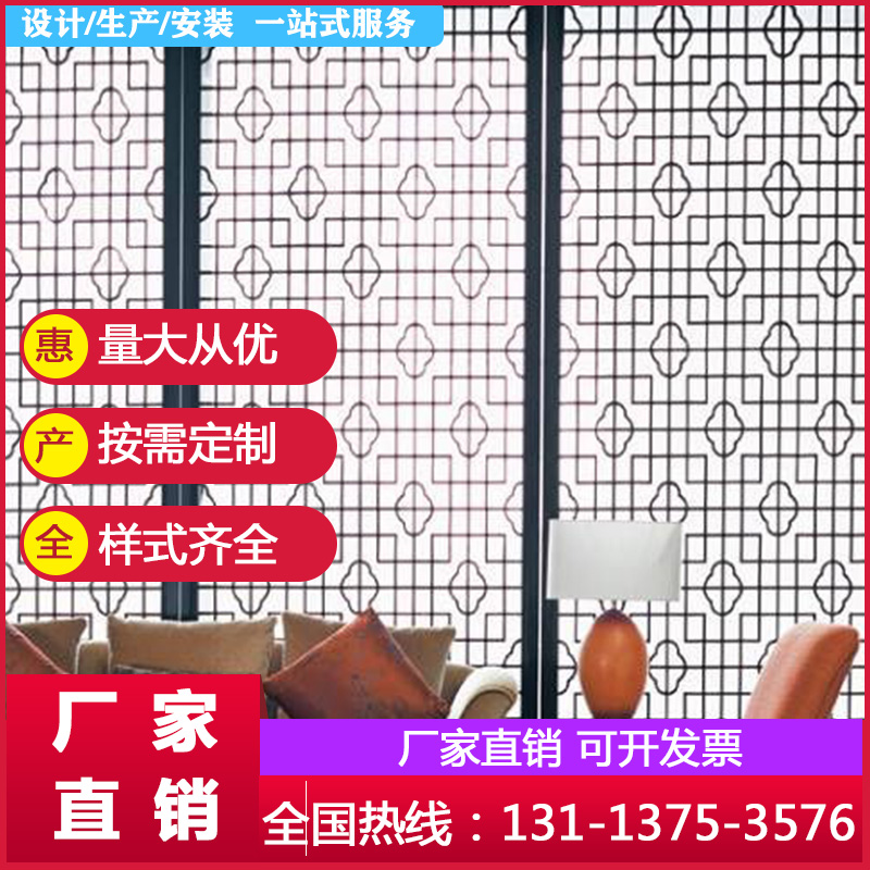 Wood grain aluminum window grilles Chinese style lattice aluminum window grilles street transformation aluminum guardrail decoration retro aluminum screen